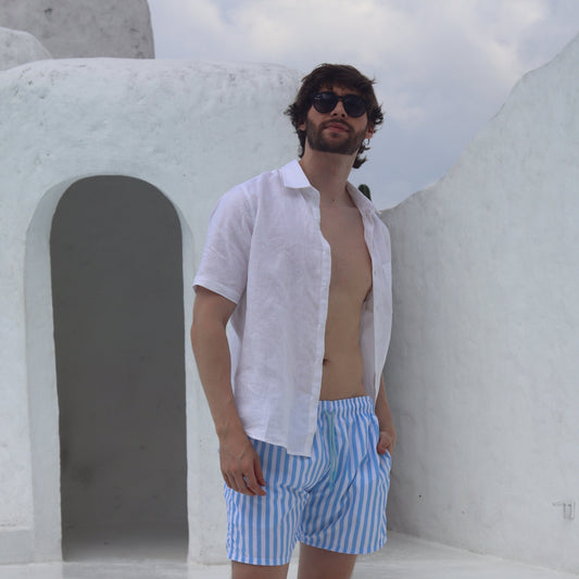 Camisa Lino Premium Manga Corta Azul Claro
