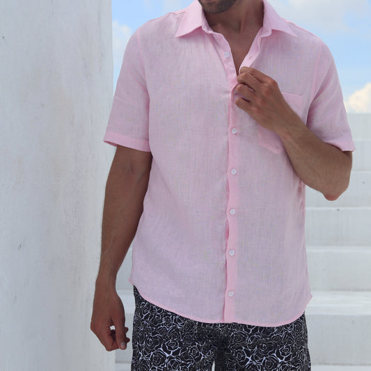 Camisa Lino Premium Manga Corta Rosado